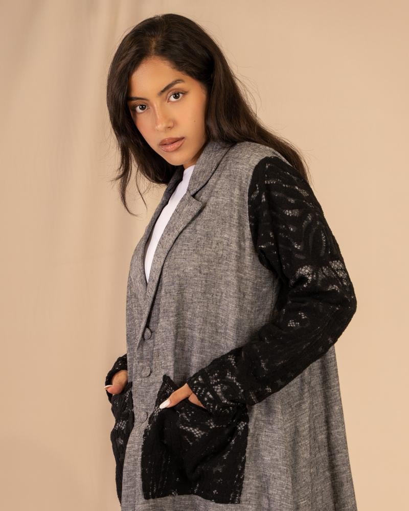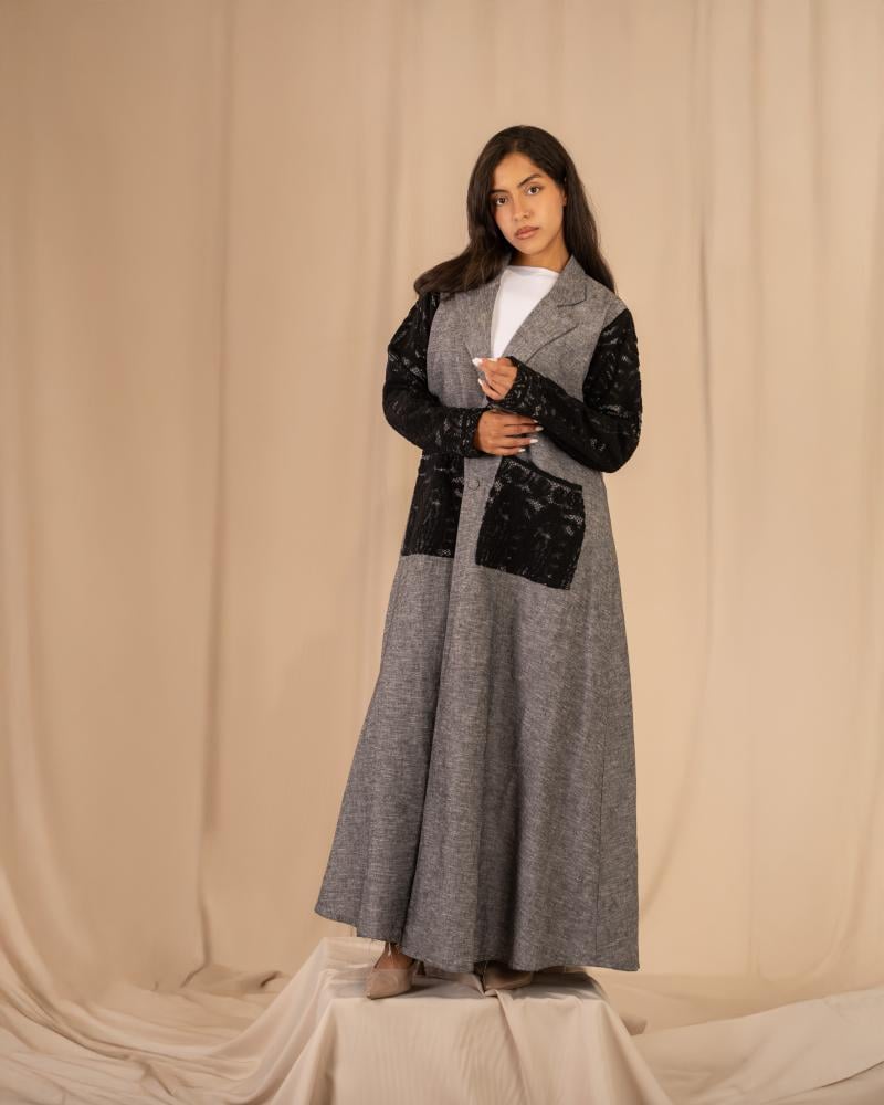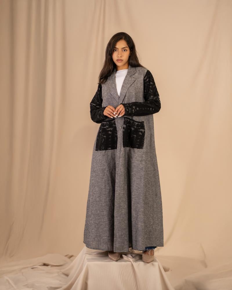 عبايه لينن هندي مع دانتيل صوف مكونة من قطعة واحدة قصة العباية Acut .